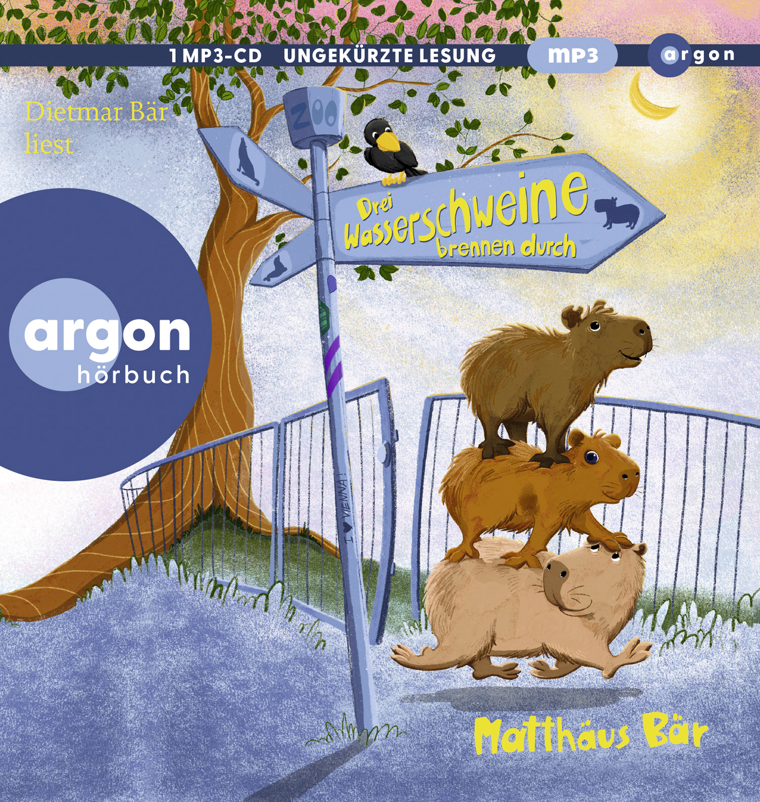 Mehr? Tristan und Emmy sind verunsichert. Wie denn, was denn, mehr? Doch Rauls Abenteuerlust ist geweckt, und mit Mut, Geschick und etwas Glück gelingt es den dreien, nachts die Absperrung des Geheges zu überwinden. Plötzlich stehen sie in der Welt »draußen«. Als erste Wasserschweine überhaupt! Ein kleiner Schritt für die Menschheit, aber ein großer Schritt für ein kleines Wasserschwein!